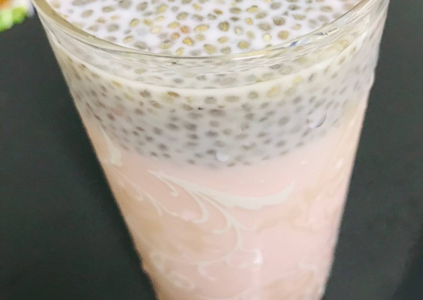 - Pick a glass then add roohafza syrup a tablespoon or more then add cold milk then soaked chia seeds stirr well then serve it !!!!