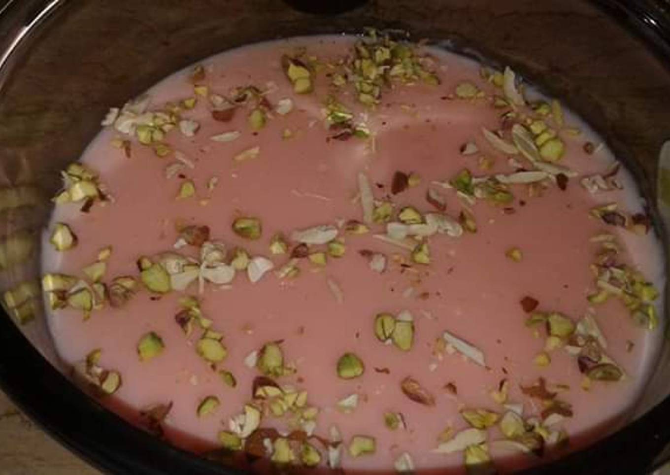 - 4 table spoon Strawberry custard (mix in some fresh milk)