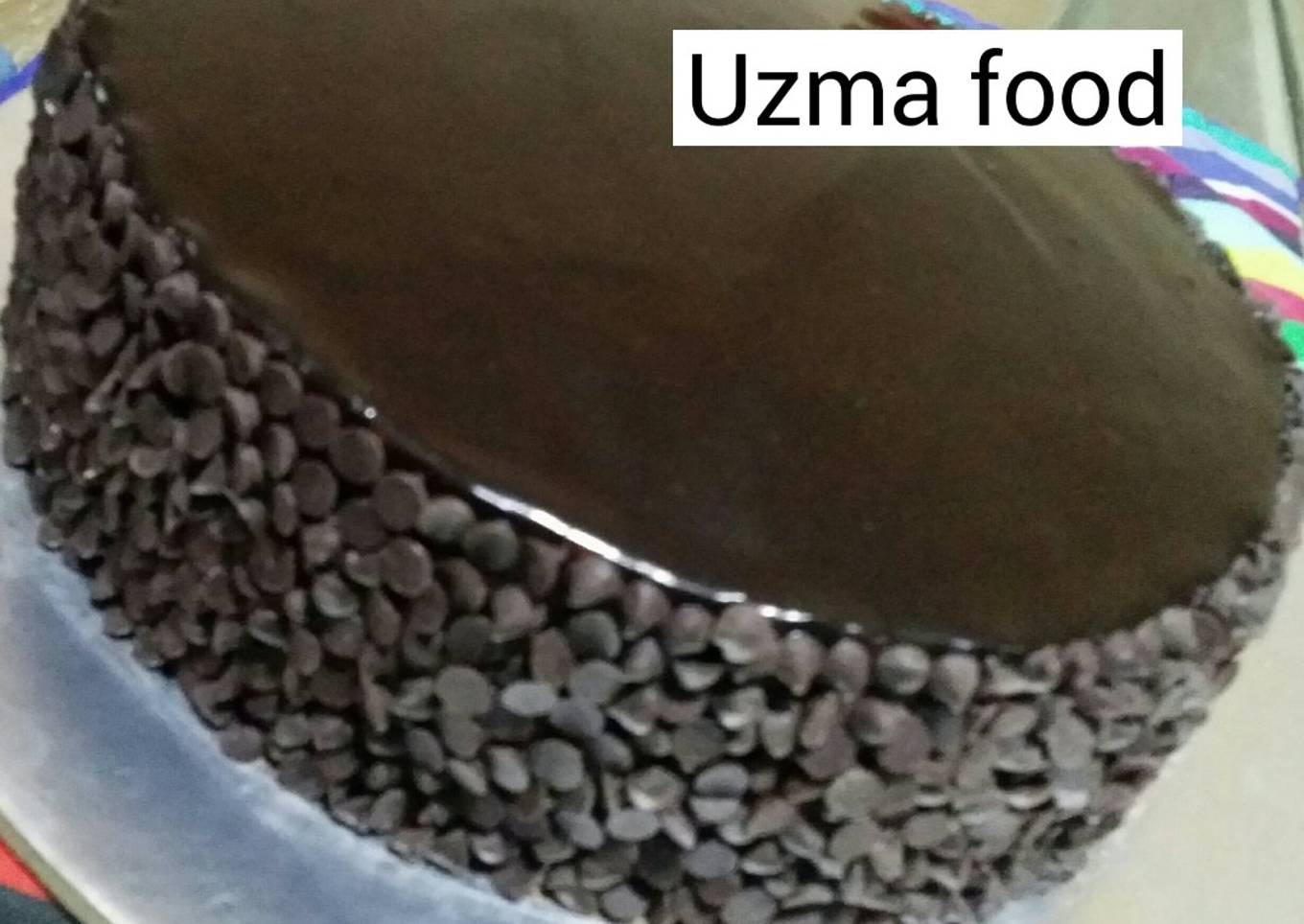 - Ab sponge ko ganache s pour kr k cover karen or sides pr chocolte chip s cover krden ready h eid yummy double chocolate ganache cake eid k subh nashta k table pr serve karen