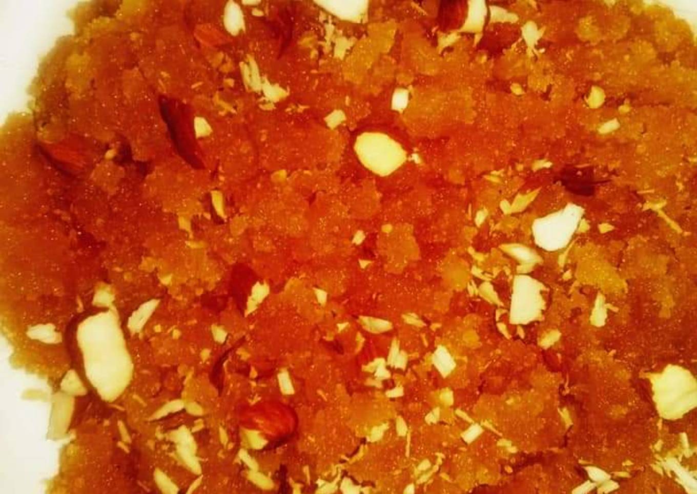 - Ghee ma.elaichi dal kr kr kar.krain or sath he shakar dal kr brown krain jb shakr ka colour change ho jhy to sooji add kr dain(sooji ko 15 minta phlay pani ya doodh ma bigona ha) beegi sooji ko.add kr k kafi dair bhoonain k makandi halvay ki trah brown ho jhy sooji ko.kafi bhoon.na ha k ghee alag ho jhy... it's very easy n yummy believe me...so try it..or last ma nuts dal kr serve krain